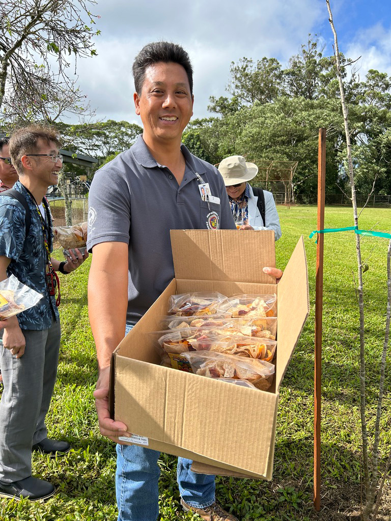 2024年2月05日 イリアヒ公園の下見 2月 5, 2024 | | 新着情報 聖子さん(樹木医)の指導風景 アウさん(公園敷地整備都市林業課)からの差し入れ、ハワイ名産「タロ芋チップス」 アウさんと聖子さん アウさんは、とても熱心で協力的で、ありがたい存在です。 皆様のおかげで、楽しく準備が進み、これからがさらに楽しみです。